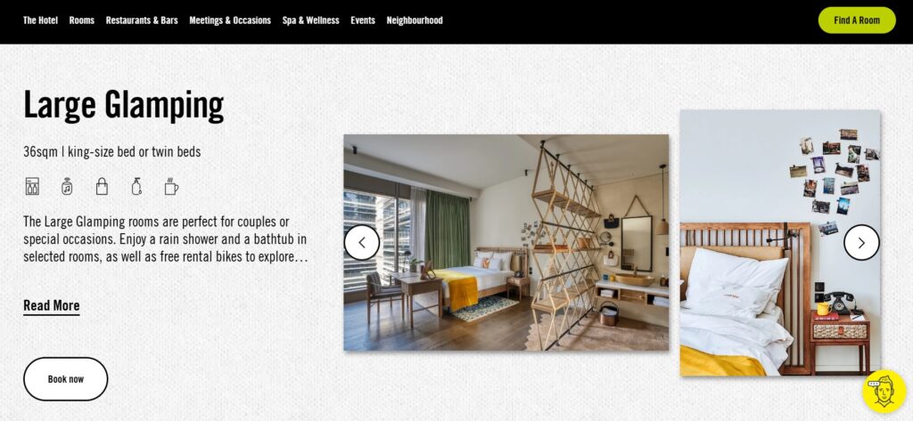 The hotel appeals to travelers who enjoy community driven environments because it hosts workshops, small events, and gatherings. It is located next to the Dubai World Trade Centre, making it accessible for business visitors while still offering a non corporate atmosphere. With options like bike rental, mixed sauna facilities, and several dining venues, they create an environment where guests can choose between quiet corners or more lively shared spaces.