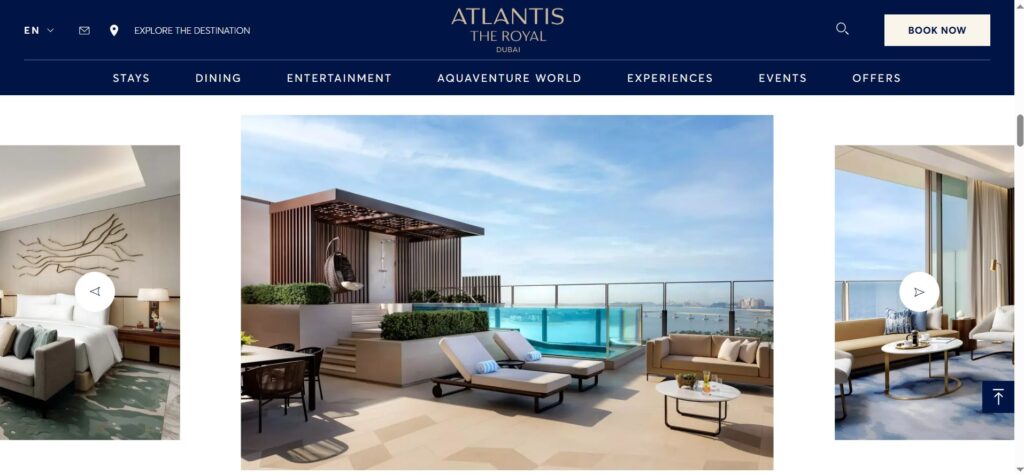 Atlantis The Royal presents itself as a large, experience driven resort built around dining, entertainment, and curated leisure activities. They position the property as a place where guests can explore a wide range of culinary concepts, relax at wellness facilities, and move easily between restaurants, pools, and shared spaces. The setting is designed with visual impact in mind, and visitors often find that the layout encourages movement between different areas without feeling stuck in one part of the resort.